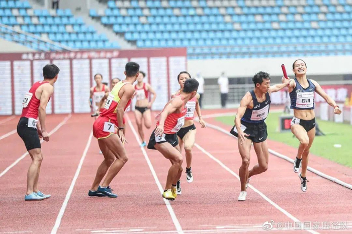 混合4×400米接力决赛,何淼格(第一棒)、杨会珍(第三棒)带领四川队以3分21秒16夺冠;