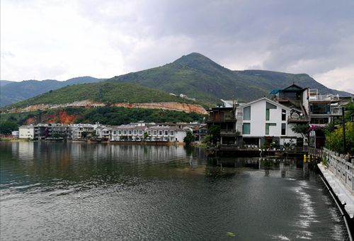 与陆地一座小桥相连的玉矶岛,是古镇之旅必游之地,因为在岛的尽头有两栋别墅,一个叫“太阳宫”,一个叫“月亮宫”,是白族舞蹈家杨丽萍的私人别墅。
