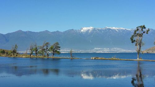 从大理市区出发约5公里后,道路就沿着海边盘旋蜿蜒,一边是高山,一边是洱海,海的对面是苍山,途经水岸、湿地、村庄、树林、乡村民宅、酒店客栈、多个景点,可随时随地停车观山看海,亦可逗留小憩感叹抒怀。