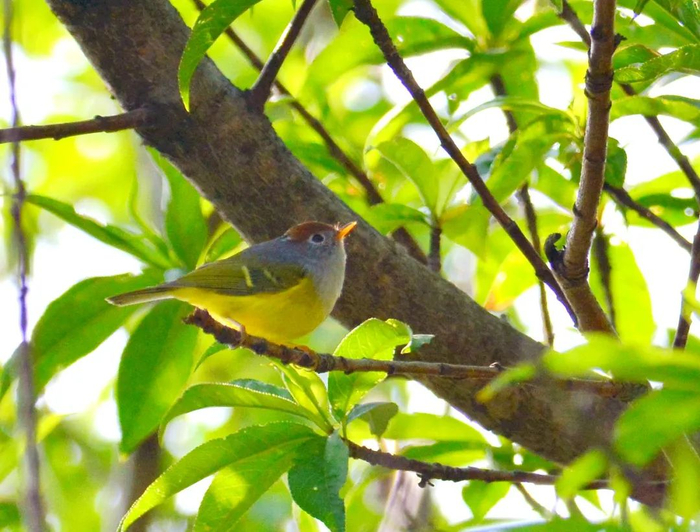 栗头鹟莺为体型较小(9厘米)的橄榄色莺。头顶栗色,侧顶纹及过眼纹黑色,眼圈白色,脸颊灰色,两道翼斑黄色,腰部及两胁部黄色,胸部灰色。