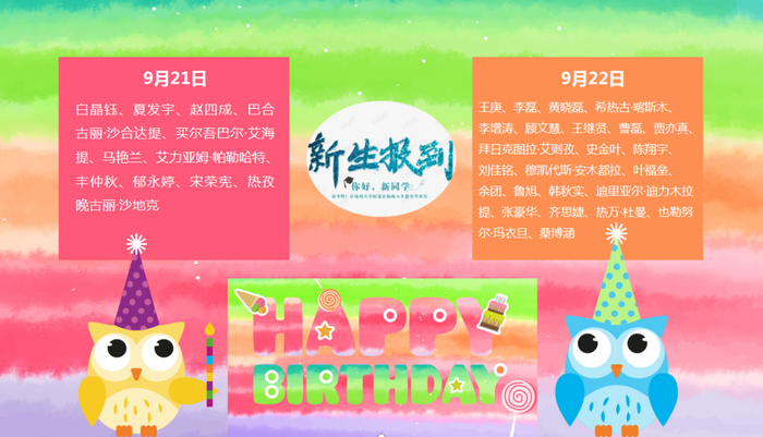 新生报到日,将会有以上35位萌新迎来生日,让我们一起祝35位同学生日快乐,扬帆起航!