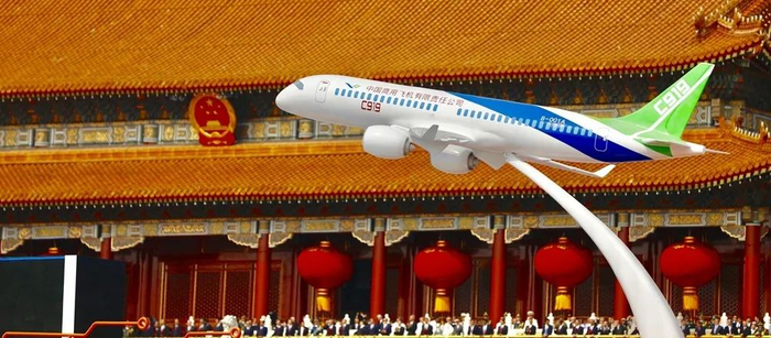 C919大型客机是我国按照国际民航规章自行研制、具有自主知识产权的大型喷气式民用飞机,座级158-168座,航程4075-5555公里。2015年11月2日完成总装下线。2017年5月5日成功首飞。