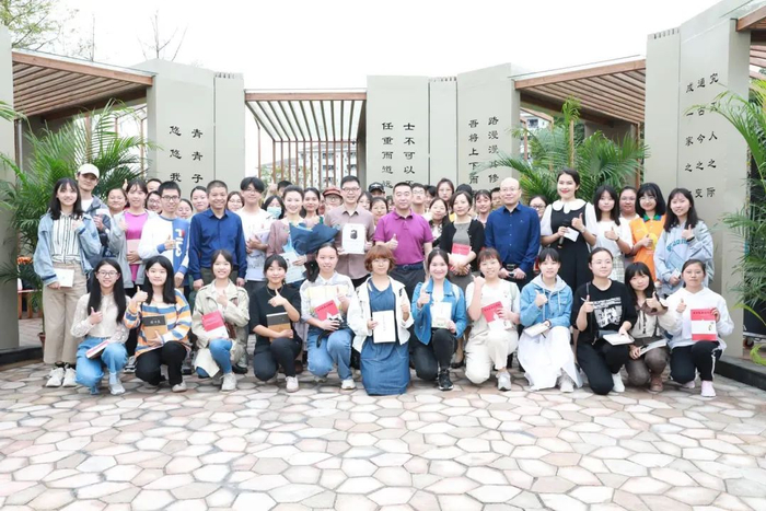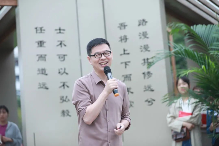 “秦筝吐绝调,玉柱扬清曲,弦依高和断,声随妙指续。”玉带河畔琴声悠扬,回响天际;长廊之外斜风细雨,观者忘归。在古典灵透、纯朴古雅的古筝乐曲声中,来自南京师范大学文学院的郦波教授和来自中南大学文新院的杨雨教授,以诵读王阳明的哲学著作《传习录》拉开序幕,带领同学们徜徉长廊,诵读经典。