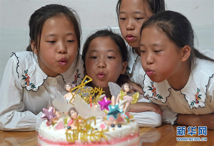 四胞胎姐妹在新家里吹蜡烛过生日(9月10日摄)。新华社记者 万象 摄