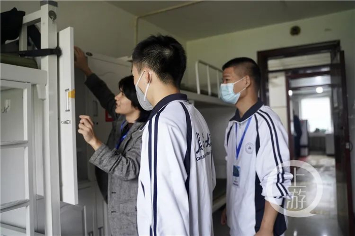 寝室里,他遇到了高中同班同学甘宇驰,由爸爸陪着来的。