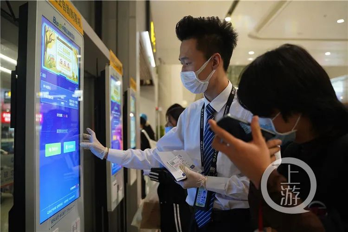 顺利抵达江北国际机场。换登机牌时,国航航空公司工作人员为他申请了特殊旅客服务,从值机柜台,到安检,再到登机口,一个工作人员交给下一个工作人员,就像是接力一样,默默带领着这个男孩完成他的旅程。