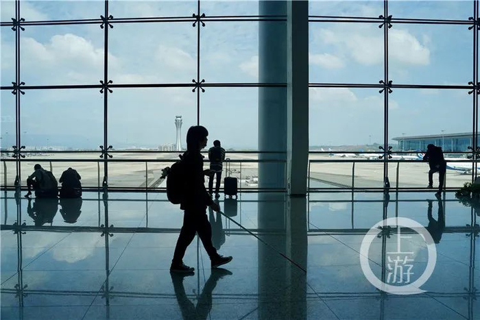 第一次离开重庆这么久,他说,心里还有点舍不得。他拿着登机牌在机场自拍了一张照片留做纪念。