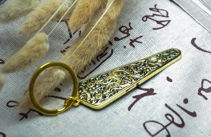 遗址公园还开发了一系列有趣的文创产品,比如博山炉、折扇、胶带、帆布包等。其中,当卢钥匙扣和当卢书签最为特别,以海昏侯国遗址出土的两枚错金青铜当卢为灵感设计,颇为精致。当卢是一种挂在马额前的装饰,在当时是贵族的象征。