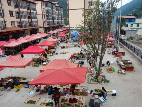 2018年9月15日,福贡县鹿马登乡赤洒底村异地搬迁集贸市场-大唐帮扶建设(福贡县鹿马登乡乡政府供图)
