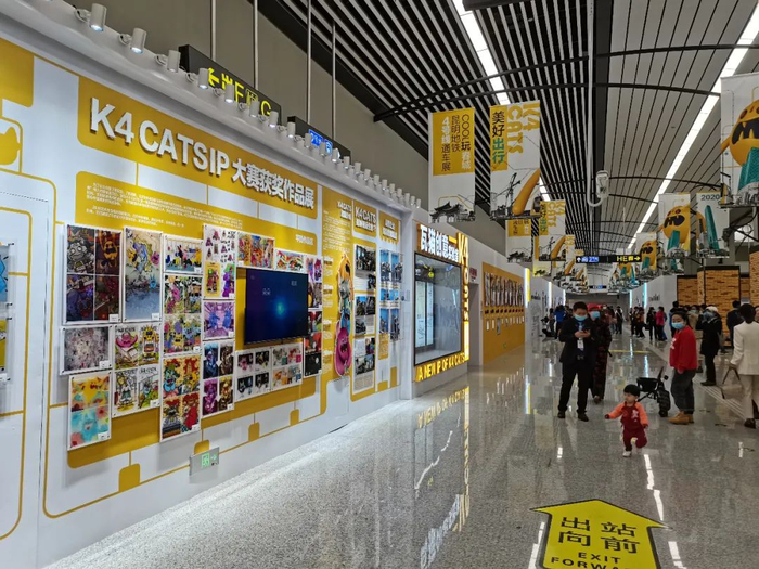 4号线还设置了K4CATS的作品展,有雕塑、平面作品以及K4CATS的灵感来源非遗镇宅兽——瓦猫的展示,打造中国轨道交通先锋的创意之路。