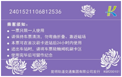 以上票面为本次推出的一日卡票面,来源于昆明地铁首届票卡设计大赛,票面以风景名胜为载体,描绘了秋夜于大观楼赏菊赏月的场景,通过“花、月、夜”等元素,展示昆明花之城的静谧之美。
