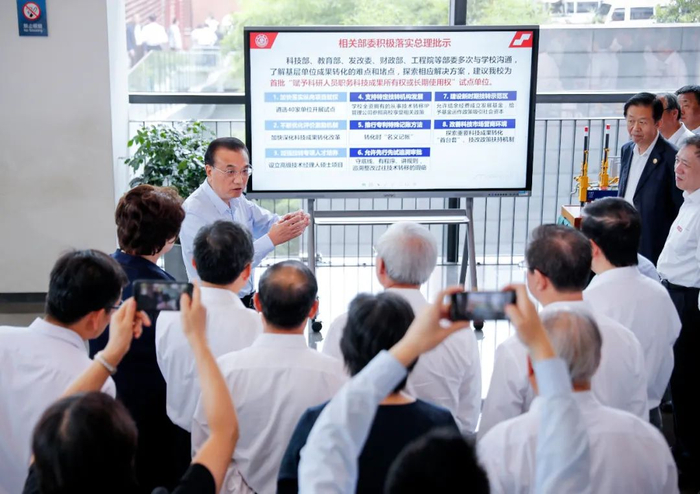 李克强总理还来到钱学森图书馆观看学校科研成果展示,与院士、教授们就破除制约科技创新活力的障碍深入交流。