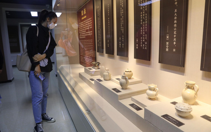 萧太后河展览馆开放首日,嘉宾参观其中的生活器具展。摄影/新京报记者王飞