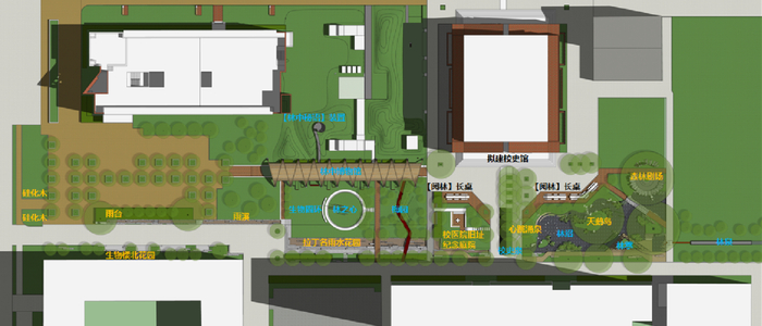 项目主要包括林中博物馆、林中密语、林之心生物圈环、梅园、樱花步道、校史泉、林沼、林葶、光雨之泉等9处特色景观节点和19处景观设计节点。