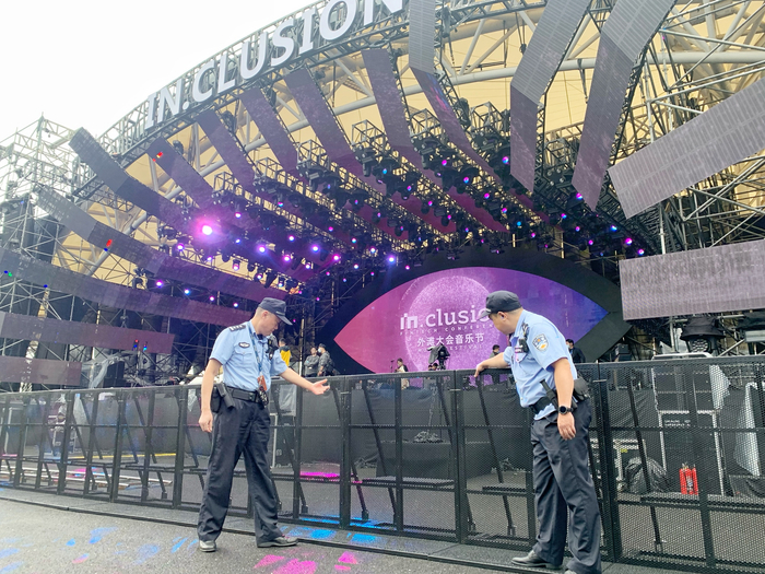 在活动现场出入口,新式的太赫兹安检机、智能测温门等设备已安装到位。连日来,属地南浦治安派出所每天安排警力指导、督促主办方专职安保人员加强现场值守,做好进场安检、票证查验以及现场秩序维护等工作。