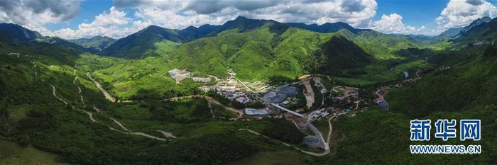 这是2019年6月16日拍摄的中国电建水电三局位于老挝北部大山里的桥梁和隧道建设现场。(中国电建水电三局供图)