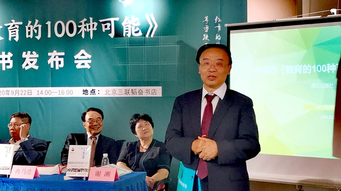 9月22日,李镇西(右一)在《教育的100种可能》新书发布会上。