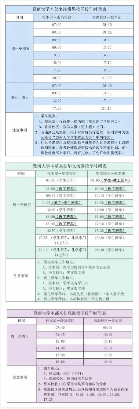 为了方便各个校区之间的同学往来,暨大有专门的校车,准点发车,又快又稳,你值得信赖。(深圳校区暂时没有直达石牌校区的校车,但学代会已经做过相关的调研,所以敬请期待噢~)