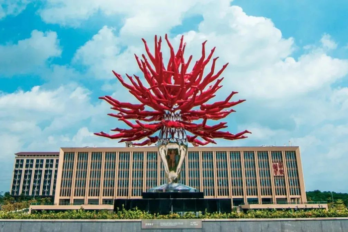 “五洲英才”雕塑位于番禺校区广场内,因为造型奇特而成为了番禺校区的拍照打卡地之一。