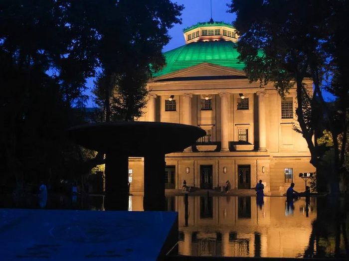 倒映在水面上的大礼堂