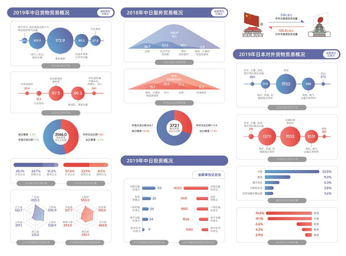 报告显示,受贸易保护主义抬头对经济全球化造成冲击,中日两国均面临百年未有之大变局,也不可避免受到外部因素的冲击。2019年,中日贸易总额为3146亿美元,同比下降4%。