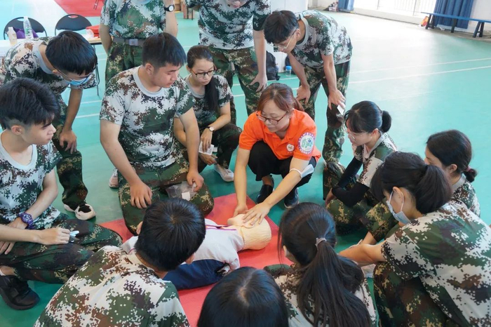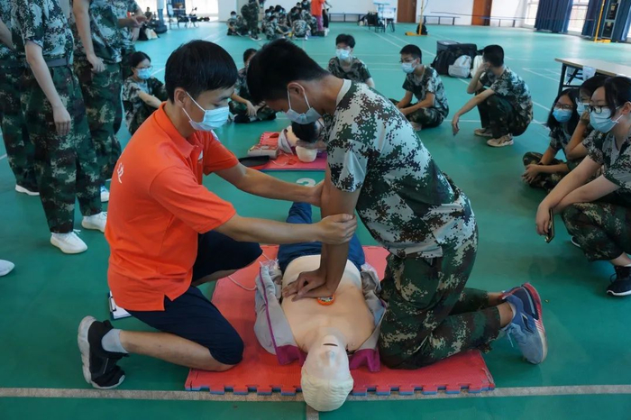 两千多名新生分成112场次开展培训,根据最新版心肺复苏指南标准,重点围绕胸外心脏按压、开放气道、人工通气、早期除颤、自动体外除颤仪AED的操作使用等内容,培训老师先作示范,学生逐一进行反复训练,老师手把手指导急救技能。培训之后进入考核环节,确保每位学生都能熟练掌握心肺复苏等急救技能。