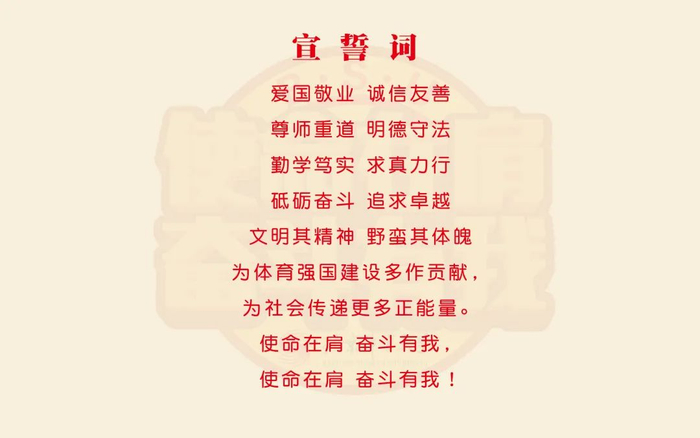让我们牢记总书记的殷殷嘱托,以“使命在肩、奋斗有我”的精神,积极投身体育强国、健康中国建设,怀抱体育初心,矢志拼搏奋斗,努力成长为德智体美劳全面发展、担当民族复兴大任的时代新人!愿我们在“学有所思”“学有所悟”“学有所践”“学有所成”中,成就我们瑰丽多姿的青春梦想。