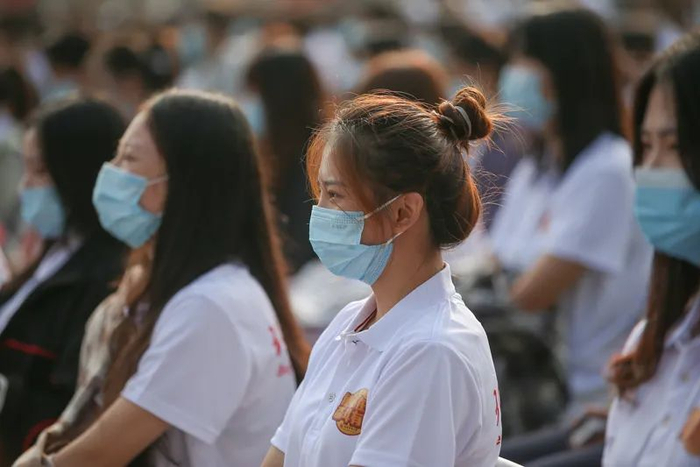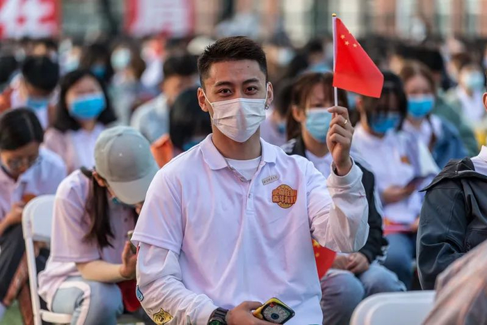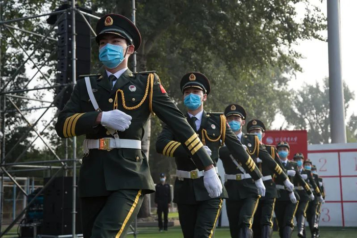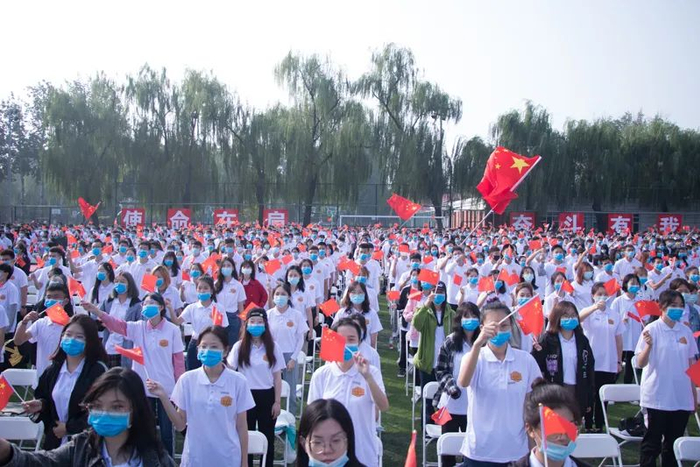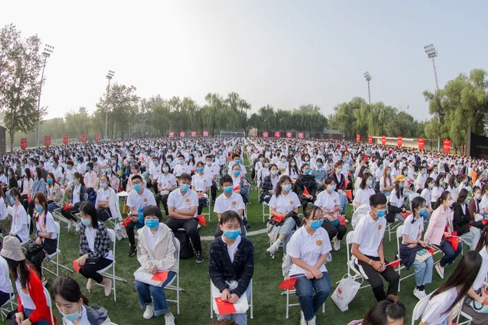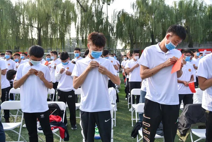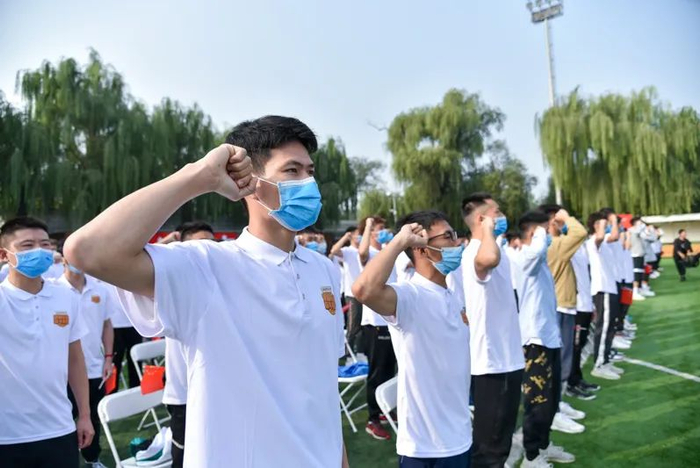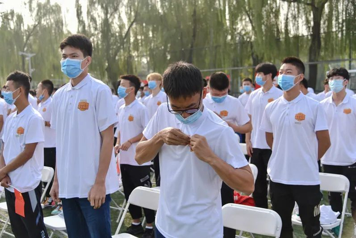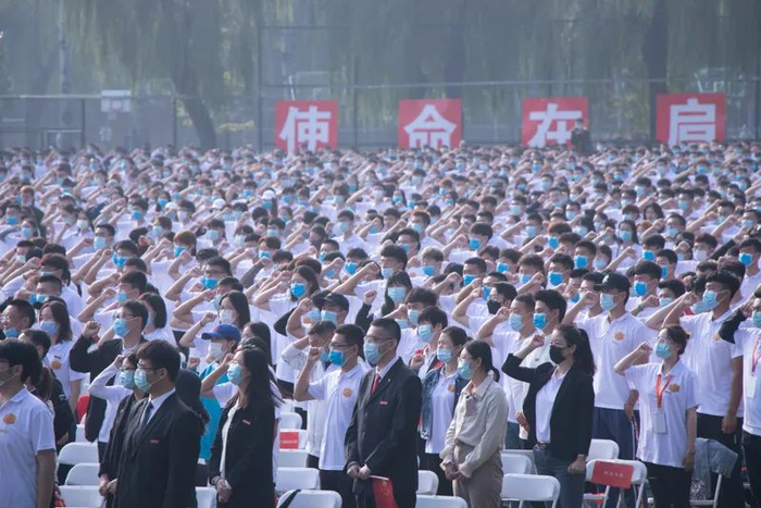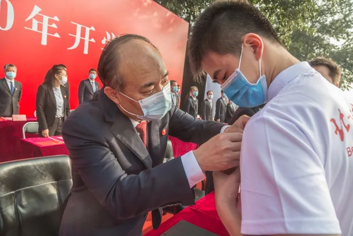 全体2020级新生一同佩戴北体校徽