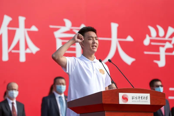 冠军是荣耀,也是光环,更是责任和动力。赛场上,我超越极限、不畏艰难、矢志不渝地为国而战。走下赛场,我将把“冠军精神”带到学习、生活、训练的各个方面,加倍珍惜这次深造的机会,利用在北体的学习时光,增长本领,提升专业知识和竞技水平,为建设体育强国、为传递更多社会正能量贡献力量。让我们怀揣自己的梦想,以体育人追求卓越的价值定位,不断突破自我、超越自我,为中国体育事业的蓬勃发展和中华民族的伟大复兴添砖加瓦!期待我们早日在校园相聚!