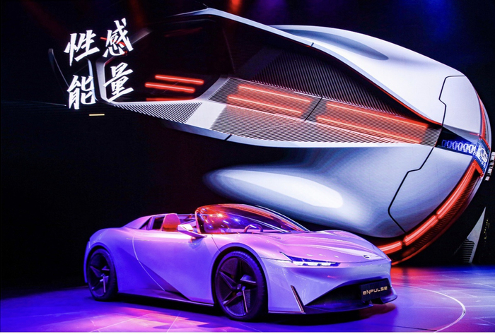 广汽整合全球设计资源打造的纯电动硬顶敞篷跑车——影动(ENPULSE)。