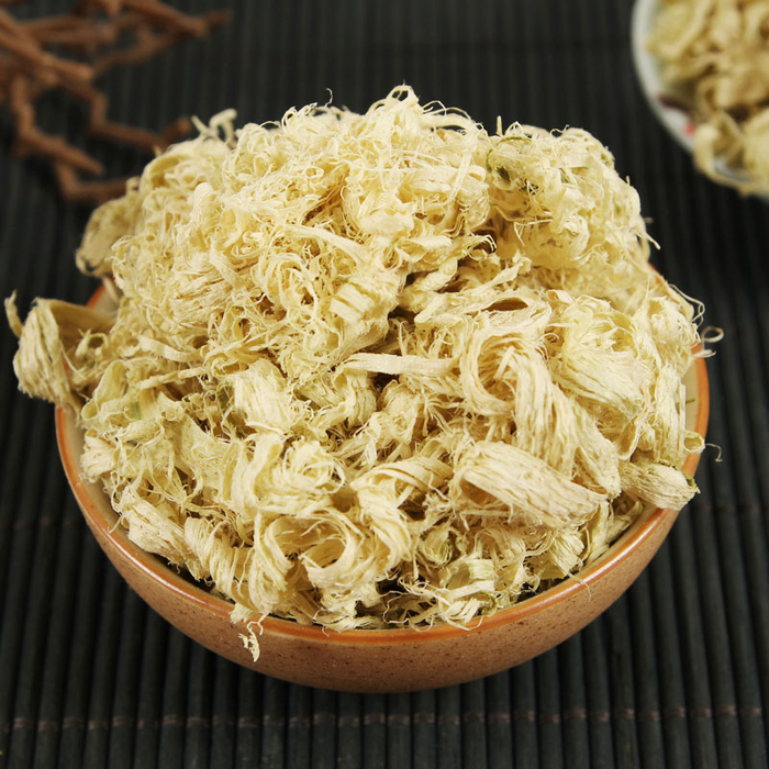 竹茹:本品为卷曲成团的不规则丝条或呈长条形薄片状。宽窄厚薄不等,为浅绿色、黄绿色或黄白色。纤维性,体轻松,质柔韧,有弹性。