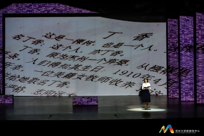 9月26日晚,由苏州大学党委宣传部、团委、艺术教育中心创作,苏州大学东吴剧社、苏州大学东吴艺术团排演的原创话剧《丁香·丁香》在独墅湖影剧院上演。