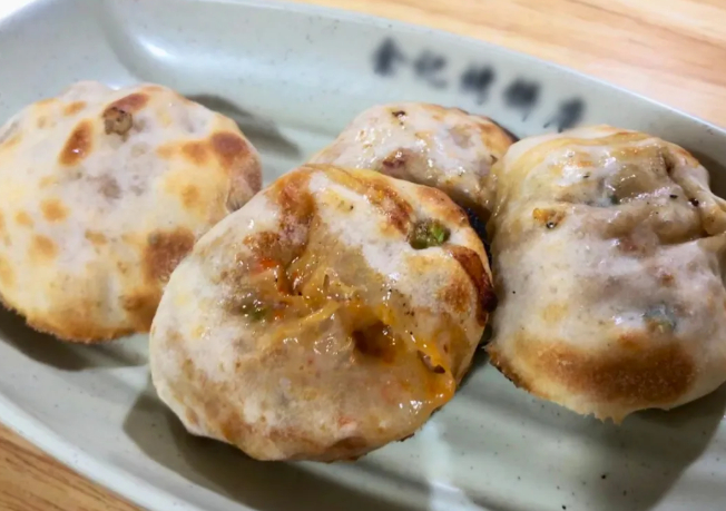 烤饼以葱花、猪肉为馅,还可加入榨菜、梅干菜等。新鲜出炉的烤饼吱吱冒油,香气扑鼻。