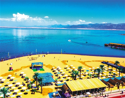 位于新疆巴音郭楞蒙古自治州博湖县博斯腾湖大河口景区,游客在此休闲观光。近年来,博湖县深入实施全域旅游战略,将碧湖美景、民俗文化、绿色有机农产品作为优质旅游资源,大力推进“文旅融合”“农旅融合”,让当地群众共享生态旅游红利。年磊摄