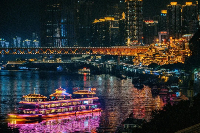 重庆旅游投资集团有限公司副总经理杨静介绍,为了更好地推动夜景文化节,旅游集团整合了黄金游轮的黄金之夜都市游、洪崖洞“重逢1980”项目以及来福士的探索舱·观景台三大景点,联合打造了水陆空特惠旅游产品,让游客可以全方位感受魔幻重庆不一样的山城风情。