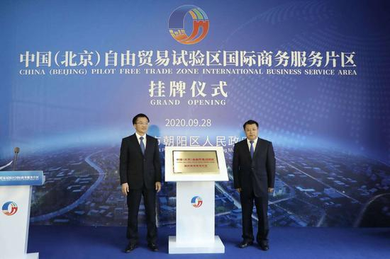 9月28日上午,朝阳区政府、通州区政府、顺义区政府举办了中国(北京)自由贸易试验区国际商务服务片区挂牌仪式。该片区将重点发展数字贸易、文化贸易、商务会展、医疗健康、国际寄递物流、跨境金融等产业,打造临空经济创新引领示范区。