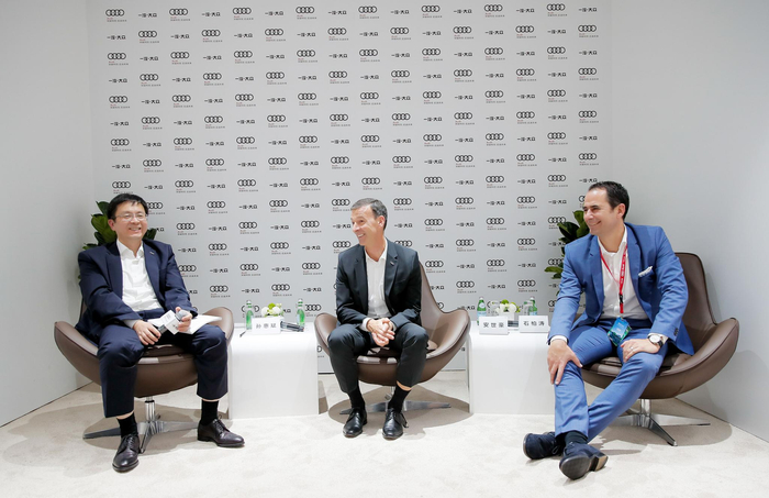 在车展上亮相的新能源车型体现出奥迪在电动化领域以中国市场为中心的战略布局。在车展期间,奥迪中国总裁安世豪、一汽-大众奥迪销售事业部总经理石柏涛和一汽-大众奥迪销售事业部执行副总经理孙慧斌联合接受了新京报贝壳财经等媒体的采访。安世豪表示,“接下来奥迪会为电动车创造中国的电动车生态系统,在此层面将推动更多实质性合作,第一就是将电动化产品品牌e-tron国产化,另一点是打造便捷的充电基础设施。”