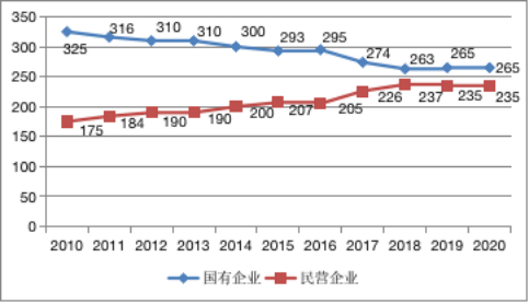 几年来,我们坚持“两个毫不动摇”,国有企业和民营企业携手共进、互利共赢。2020中国企业500强中,国有企业为265家,民营企业为235家,均与上年500强持平,占比分别为53%、47%。其中,民营企业的数量在经过多年的持续增长后,“十三五”以来趋于稳定。