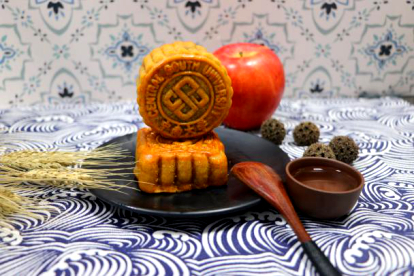 今年的月饼共有五种口味,鲍鱼莲蓉馅、蛋黄莲蓉馅、绿豆沙馅、红枣馅、紫薯馅。
