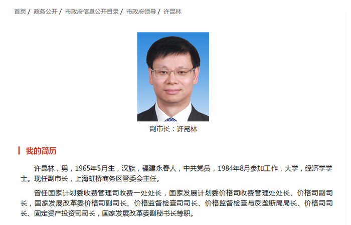 2017年3月,许昆林“空降”地方,履新上海市副市长。