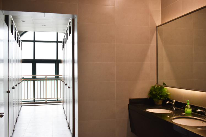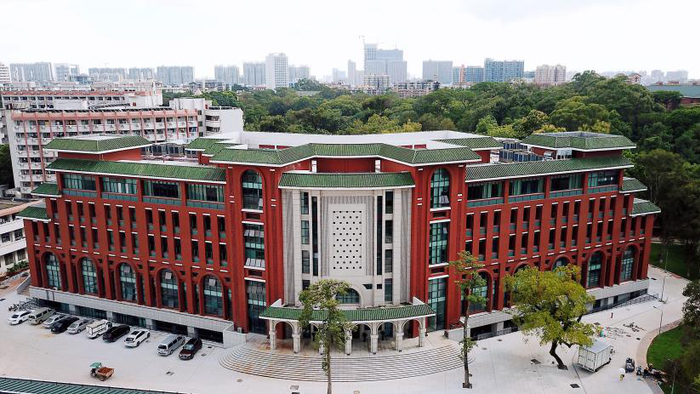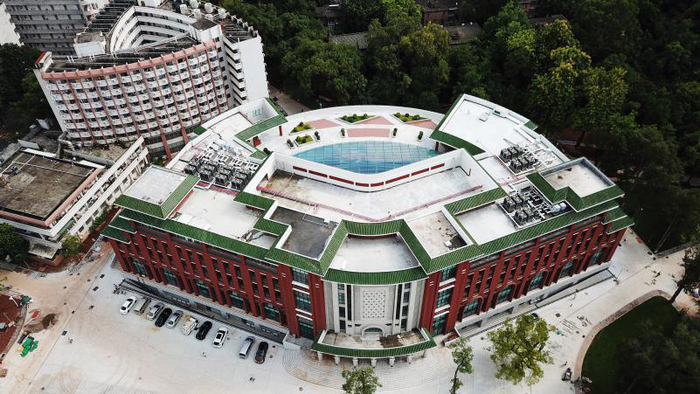 外观上 新食堂延续了红墙碧瓦的传统风格