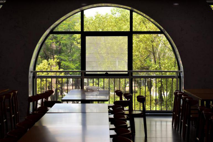 ▲拥有优美弧线的松涛园食堂(摄影:韦栩滢)