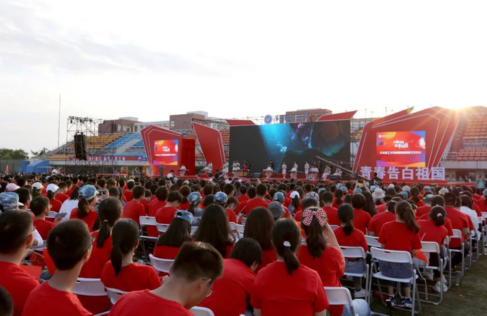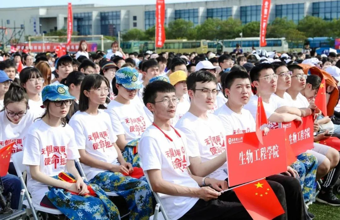 天高云淡、秋风清沁,9月28日下午,8800余名本科新生和研究生新生齐聚一堂,将奉贤校区体育场变成了一片色彩的海洋。缤纷的文化衫,鲜艳的小国旗,一张张青春面孔上满漾着朝气和期许。以“无惧风雨,使命担当”为主题,华东理工大学2020级新生开学典礼在此隆重举行。