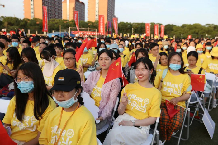 “我们在这里放飞,放飞青春的理想。我们在这里播种,播种明天的希望……”在校歌《明天的希望》的悠扬旋律中,华理2020级新生开启了人生新航程!
