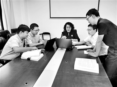 图为刘巍案移送审查起诉前,光明区监委调查组成员对本案证据进行模拟庭审展示。吕婧静 摄