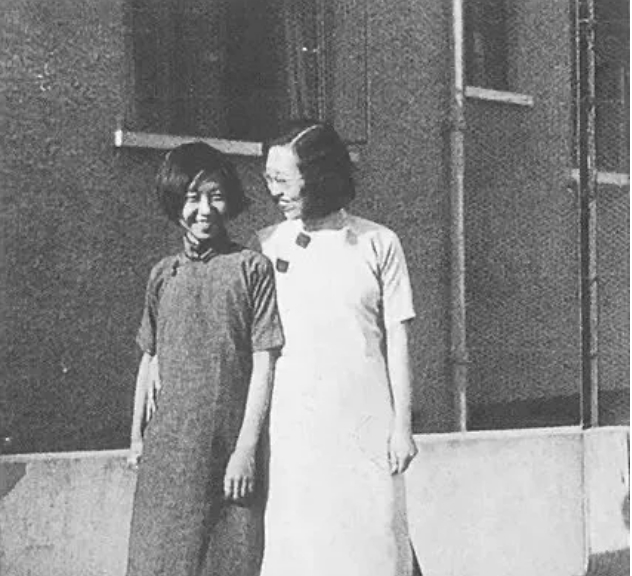 年轻时的张爱玲(左)与姑姑张茂渊。