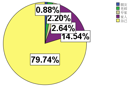 通信学院郝晓斌老师带领学生团队以专业方向为主题,对我校新生进行了一次抽样调查,收集到300名新生的问卷,其中男生为60.4%,女生为39.6%。调查显示,在大学填报志愿专业的选择上,79.74%的学生表示由自己决定,排名第二的是家长,仅占14.54%。19.4%的同学,在高考之前便已经确定好自己今后将要选择的专业。