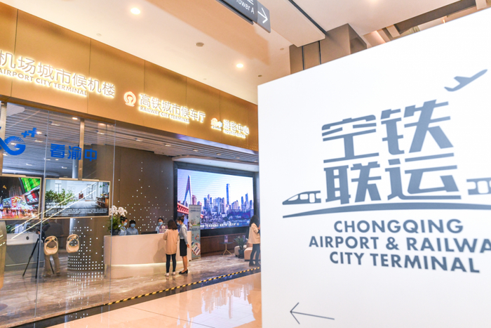 昨(29)日,由渝中区政府、重庆机场集团、成铁集团重庆车站、重庆来福士联合打造的渝中区机场城市候机楼、高铁城市候车厅、游客中心在来福士购物中心LG层揭牌投用,为市民游客提供机票订购、车票订购、自助值机、行李托运、路途接送等全程服务。