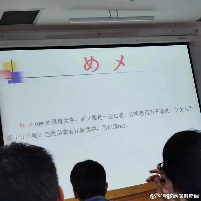 有同学称,这是日语五十音的发音讲解,形象记忆法是记住读音和字体的有效方法,但是“用黄段子才能记住读音实属低俗”。其称有很多选修这门课程的女生直接退课。