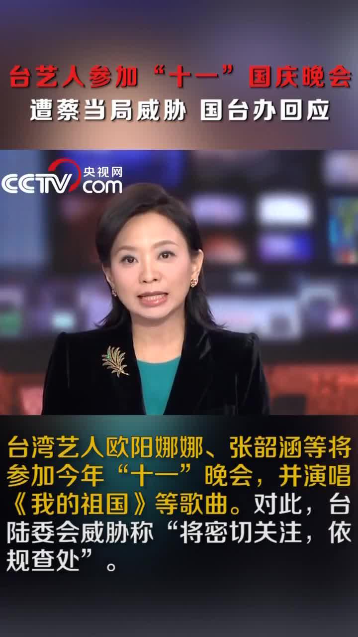 国台办30日举行例行发布会,对于欧阳娜娜、张韶涵等艺人参加“十一”晚会并演唱《我的祖国》等歌曲,台陆委会威胁称“将密切关注,依规查处”,国台办发言人马晓光表示,每逢中华儿女的重大节日,我们都会同台港澳同胞、海外侨胞共同欢庆。台湾艺人来大陆发展,参加两岸影视交流活动,与大陆歌手同台演出,观众们喜爱,我们也积极支持。民进党当局动辄对与大陆交往的台湾民众进行威胁恐吓,只能说是欲加之罪,何患无辞。